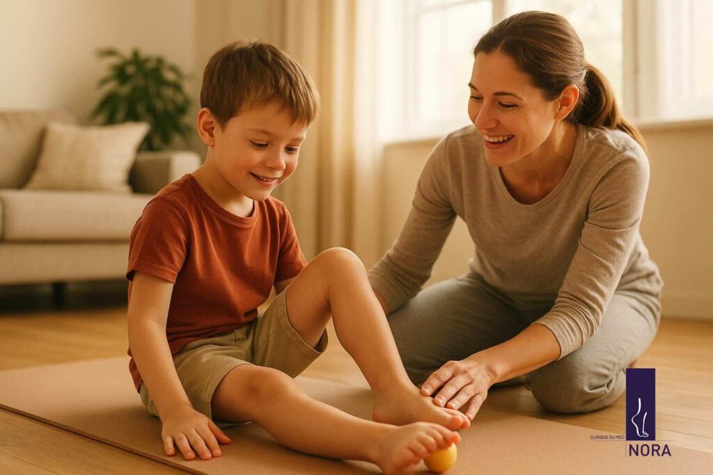 Chez NORA Clinique du Pied, notre approche est globale et personnalisée, avec des traitements efficaces pour soulager les douleurs et favoriser une récupération durable de votre enfant.